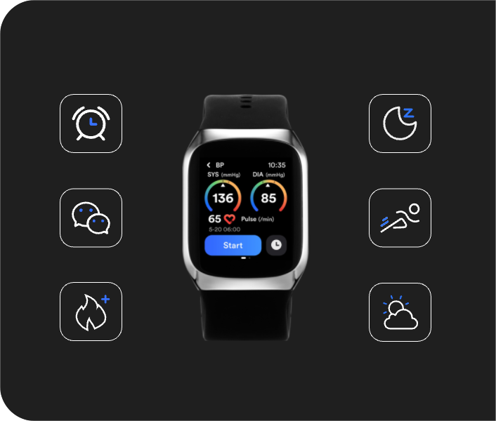 BP Doctor MED adopts a patented dual-cognitive cuff design and miniaturized components, making it a wearable blood pressure smartwatch suitable for daily use. It enables medical-grade wrist blood pressure measurement anytime, anywhere.